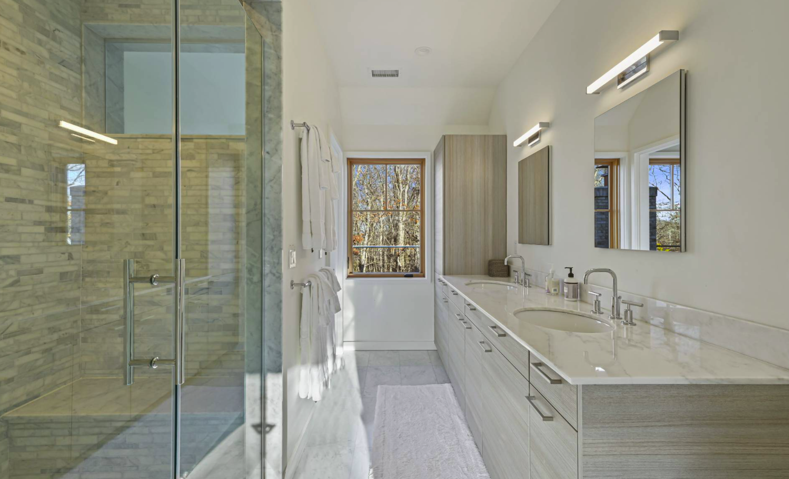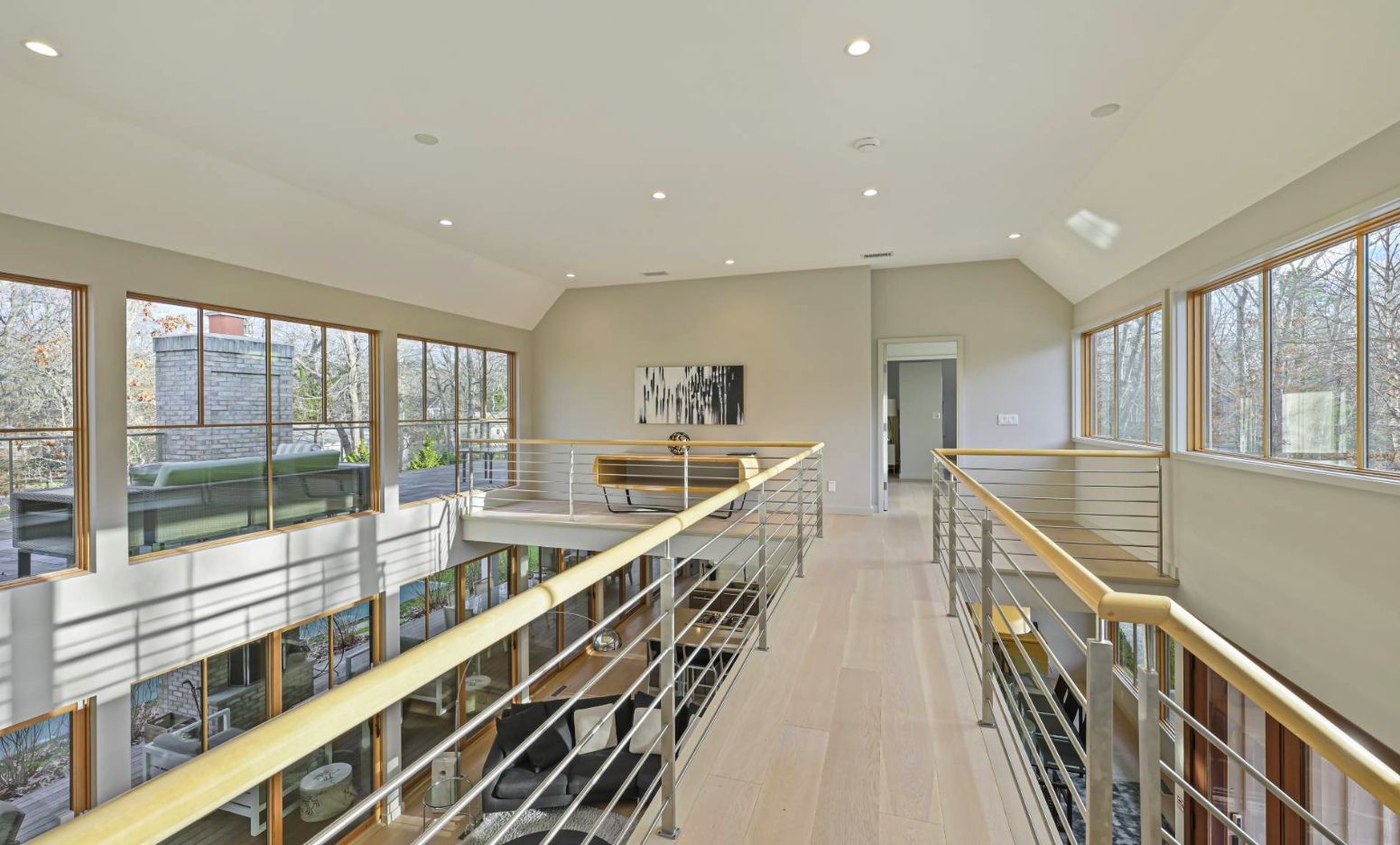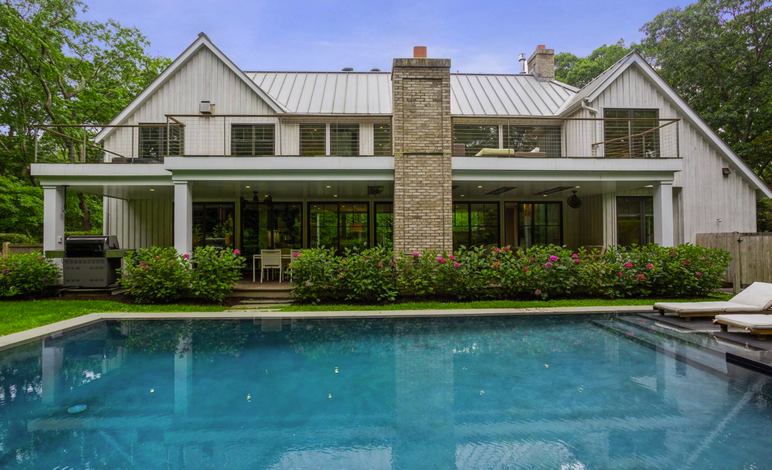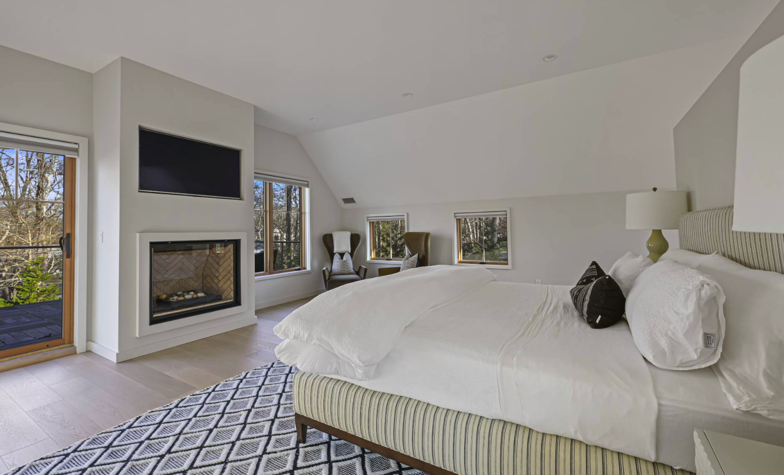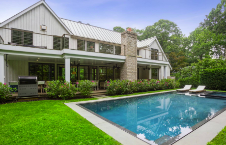 Inside, clean lines and sunlit spaces define the open floor plan, flowing seamlessly from the soaring double-height great room with fireplace to the sleek Euro influenced chef’s kitchen and dining area. Walls of glass open to a broad mahogany deck with a second fireplace and multiple lounge areas, creating a perfect balance between indoor comfort and outdoor entertainment. Six ensuite bedrooms, including a stunning primary suite with custom California Closets, spa bath, and private mahogany sundeck, ensure both privacy and luxury. The second-level layout, connected by a dramatic sky bridge, provides distinct guest and owner wings, while the lower level offers another bedroom and ample storage. Outdoors, a zero-edge heated Gunite pool and spa, covered porch, and manicured backyard invite copious days and nights of relaxation and gatherings. Located just minutes from Sag Harbor Village, this exceptional home offers access to the best of the Hamptons’ most dynamic destination—renowned dining, boutique shopping, fitness studios, and marinas, all part of the village’s vibrant new energy. Whether for peaceful weekends or a full-time summer escape, this residence exudes modern luxury in perfect harmony with coastal beauty and Hampton convenience.