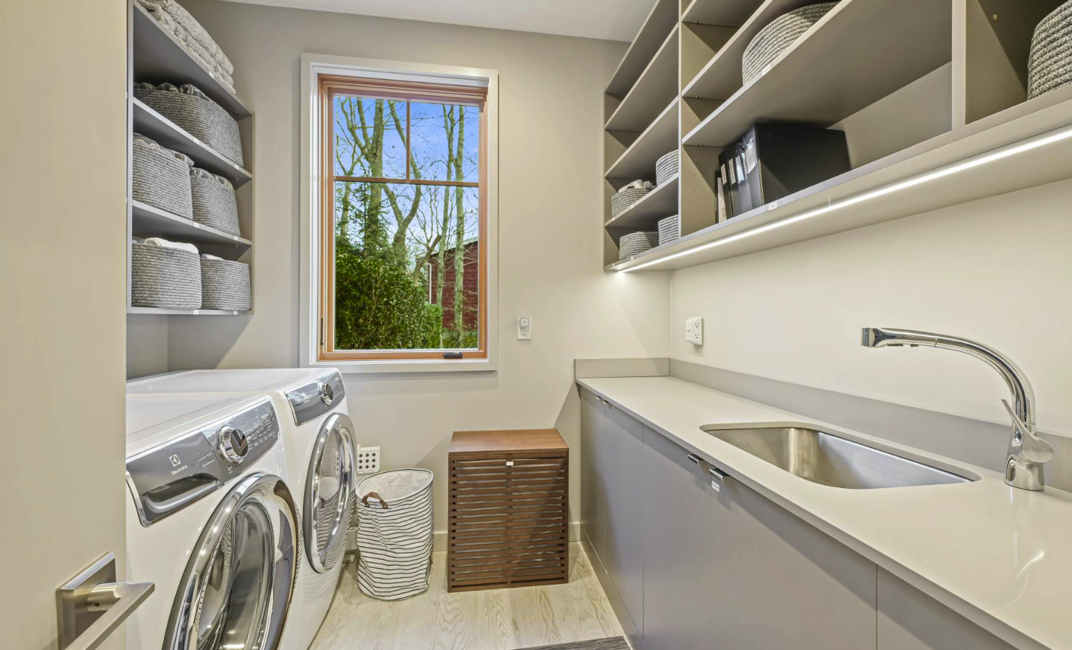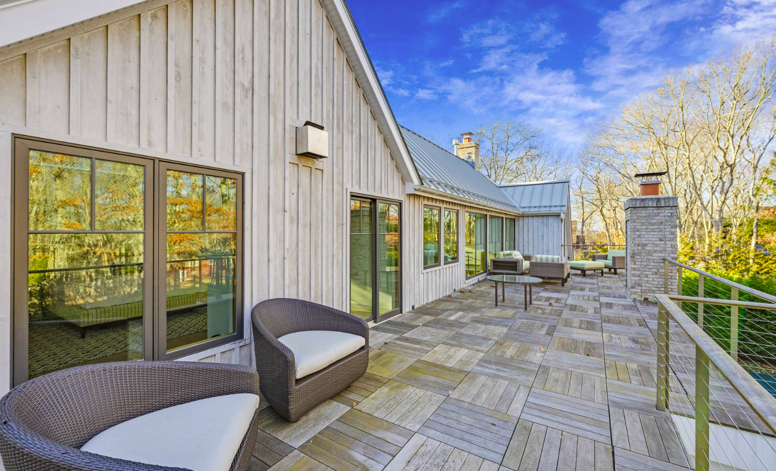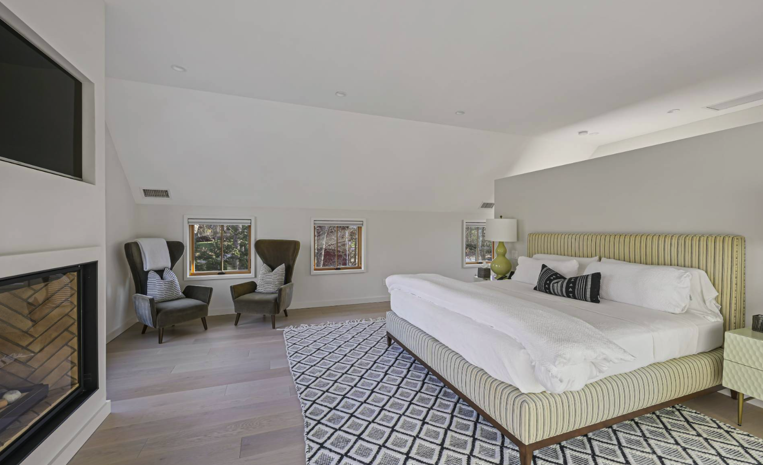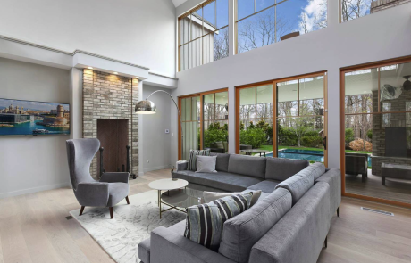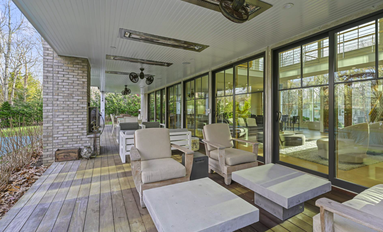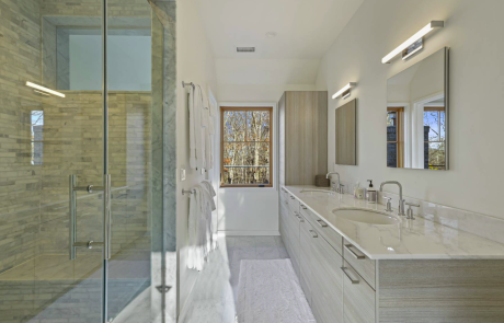 Inside, clean lines and sunlit spaces define the open floor plan, flowing seamlessly from the soaring double-height great room with fireplace to the sleek Euro influenced chef’s kitchen and dining area. Walls of glass open to a broad mahogany deck with a second fireplace and multiple lounge areas, creating a perfect balance between indoor comfort and outdoor entertainment. Six ensuite bedrooms, including a stunning primary suite with custom California Closets, spa bath, and private mahogany sundeck, ensure both privacy and luxury. The second-level layout, connected by a dramatic sky bridge, provides distinct guest and owner wings, while the lower level offers another bedroom and ample storage. Outdoors, a zero-edge heated Gunite pool and spa, covered porch, and manicured backyard invite copious days and nights of relaxation and gatherings. Located just minutes from Sag Harbor Village, this exceptional home offers access to the best of the Hamptons’ most dynamic destination—renowned dining, boutique shopping, fitness studios, and marinas, all part of the village’s vibrant new energy. Whether for peaceful weekends or a full-time summer escape, this residence exudes modern luxury in perfect harmony with coastal beauty and Hampton convenience.