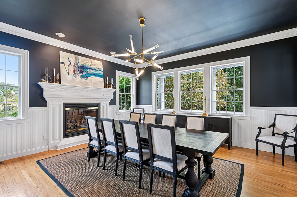 - Formal Dining Room w/ Decorative Pendant Lighting & Fireplace
