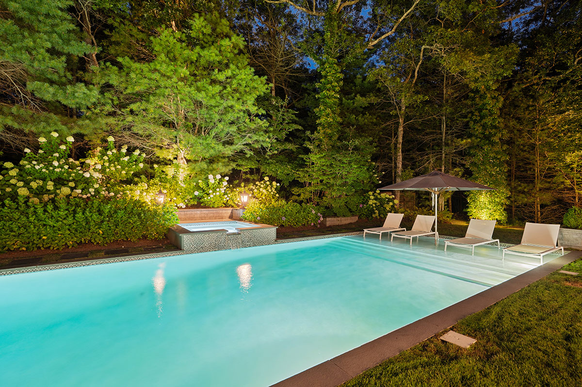 - Heated 50’ Saltwater Gunite Pool & Spa w/ Swim Shelf