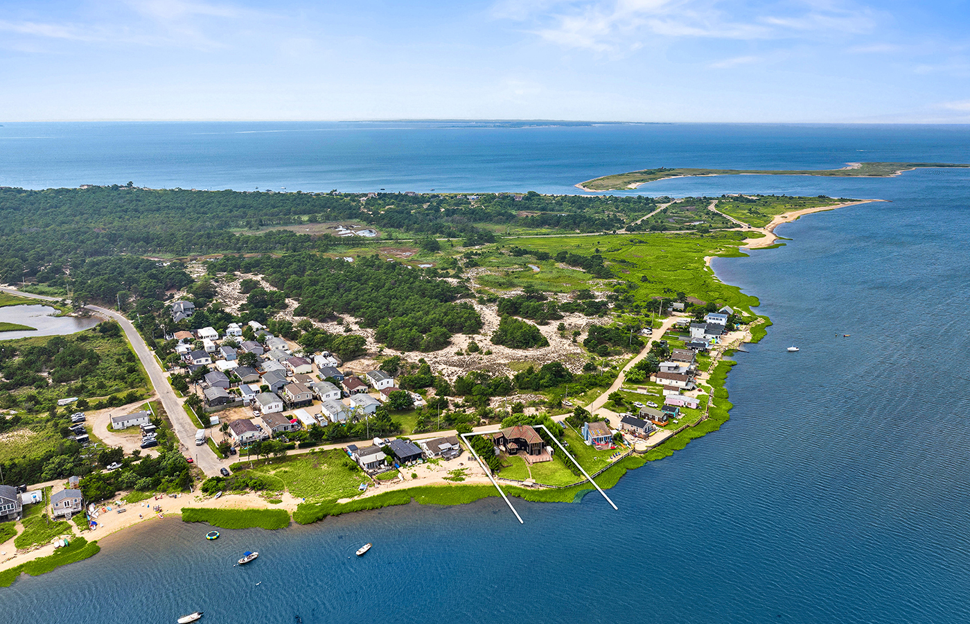 With 2,500 square feet spread over two levels, a four bedroom, two-bathroom aquatic retreat offers breathtaking views from nearly every room, bathing the interiors in the tranquil glow of the south-facing harbor.Imagine waking up to the soothing sounds of the water and stepping out for a morning swim just steps from your door. With a private mooring in your backyard, afternoons of boating, windsurfing, and kite boarding await. Enjoy lazy lunches with your toes in the sand and savor the simple pleasure of collecting shellfish from your very own waterfront haven. This unique property, privately owned and located on a secluded road with few neighbors, offers a rare peace and tranquility in the Hamptons. Direct access to a secluded beach immerses you in the natural beauty surrounding your home. The spacious living areas are perfect for entertaining, with the picturesque vistas of Napeague Harbor providing a stunning backdrop. Conveniently close to both Montauk and Amagansett, this home perfectly balances seclusion with accessibility. Whether you envision perfecting your bayside retreat or making a savvy investment, this substantial waterfront opportunity is poised for transformation. Schedule your viewing today and let the romantic allure of waterside perfection captivate you.